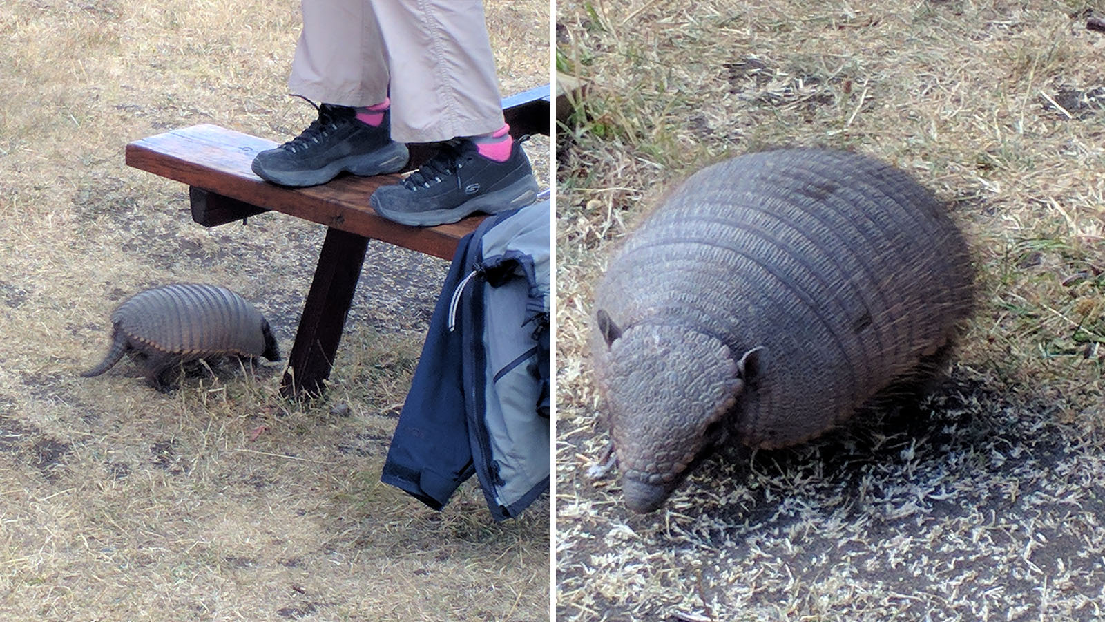 Автобус з Puerto Natales спочатку привіз усіх туристів до входу в парк. Він очікував на парковці навпроти адміністративних будівель доки пасажири, що їхали далі, оформлять документи і він зможе продовжити маршрут. Наш перший табір був в стороні наступної зупинки (біля парому, рис. 1), тож ми поїхали далі. І хоча по дорозі між зупинками було декілька цікавих видів, проте ми не були морально готовими йти в четверо більший кілометраж заради цих видів, а насолодись в лінивому режимі з автобусу. Насправді і на майбутній ділянці вистачало схожих видів.